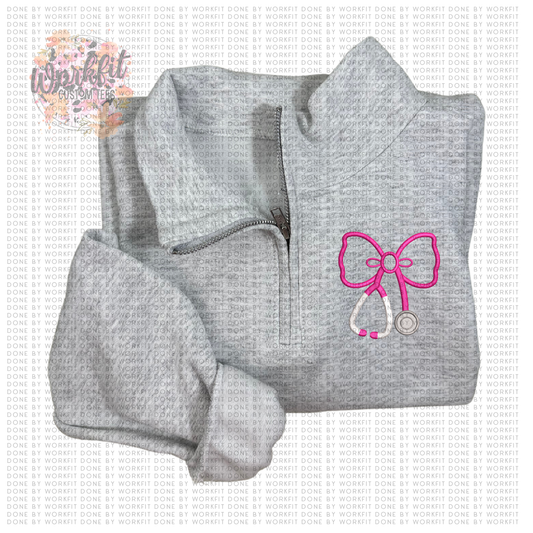 1/4 Zip Embroidery Pink Stethoscope