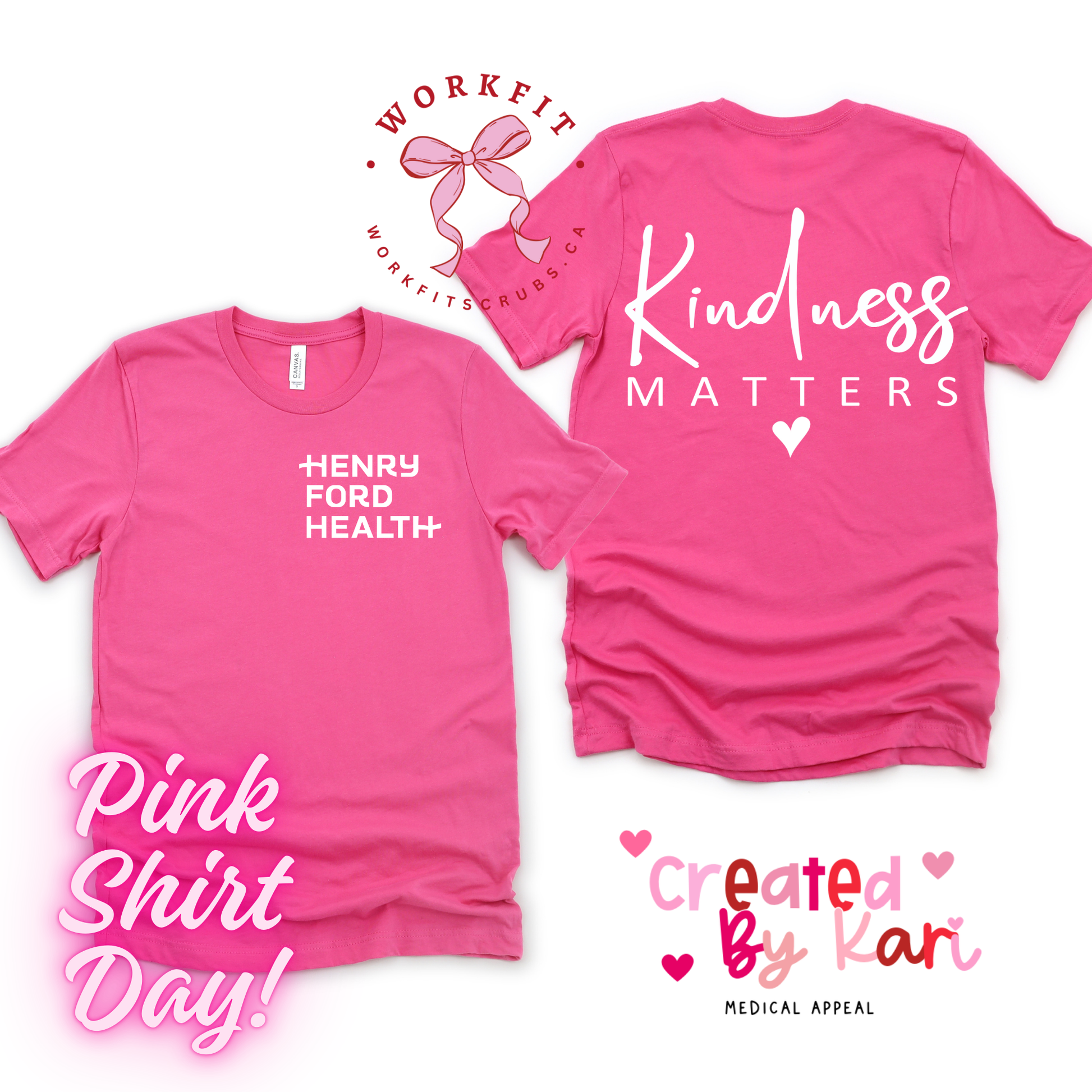 Kindness- Pink Shirt Day- Rep Your Workplace T-Shirt- Offered on a Bella Canvas Brand shirt.